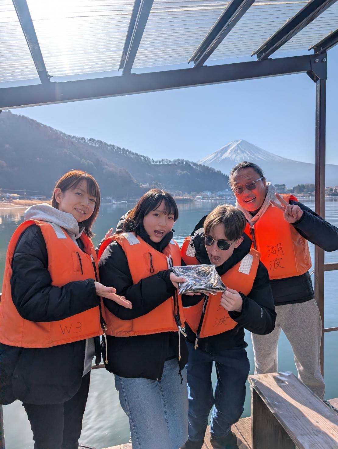 富士山を見ながら湖上での温かいご飯🍴