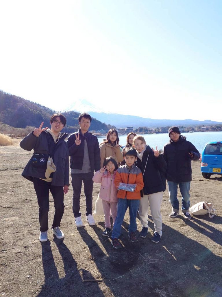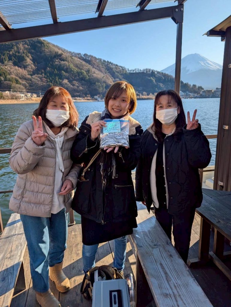 富士山を見ながら湖上での温かいご飯🍴