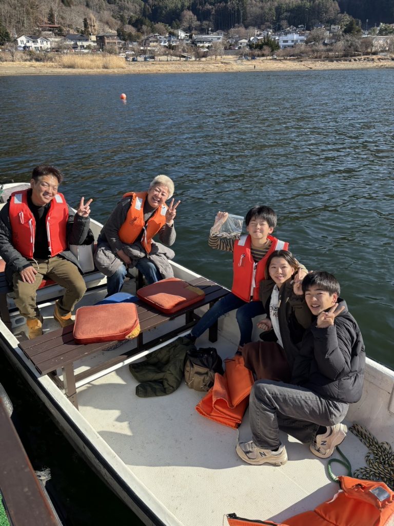 富士山を見ながら湖上での温かいご飯🍴